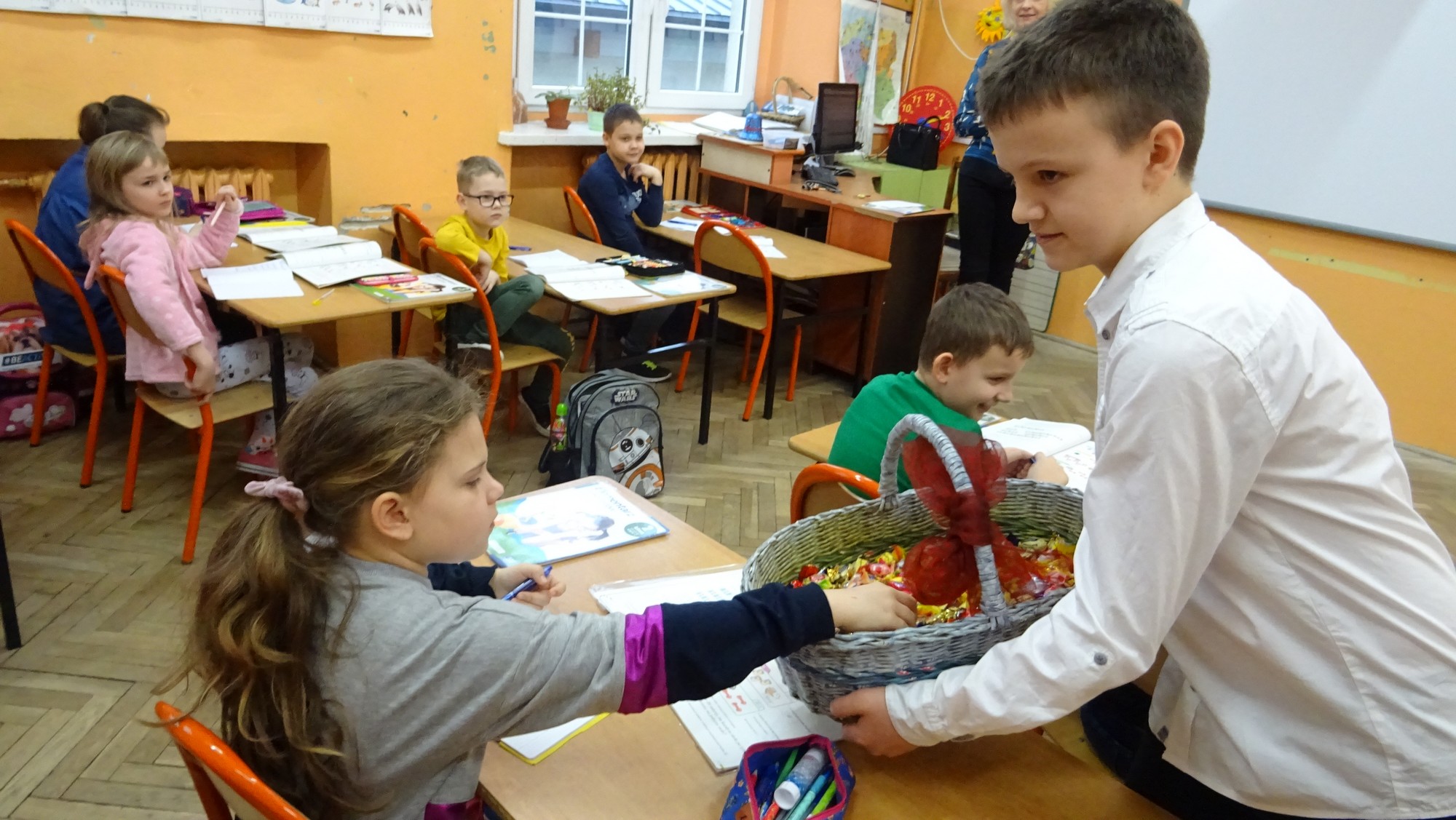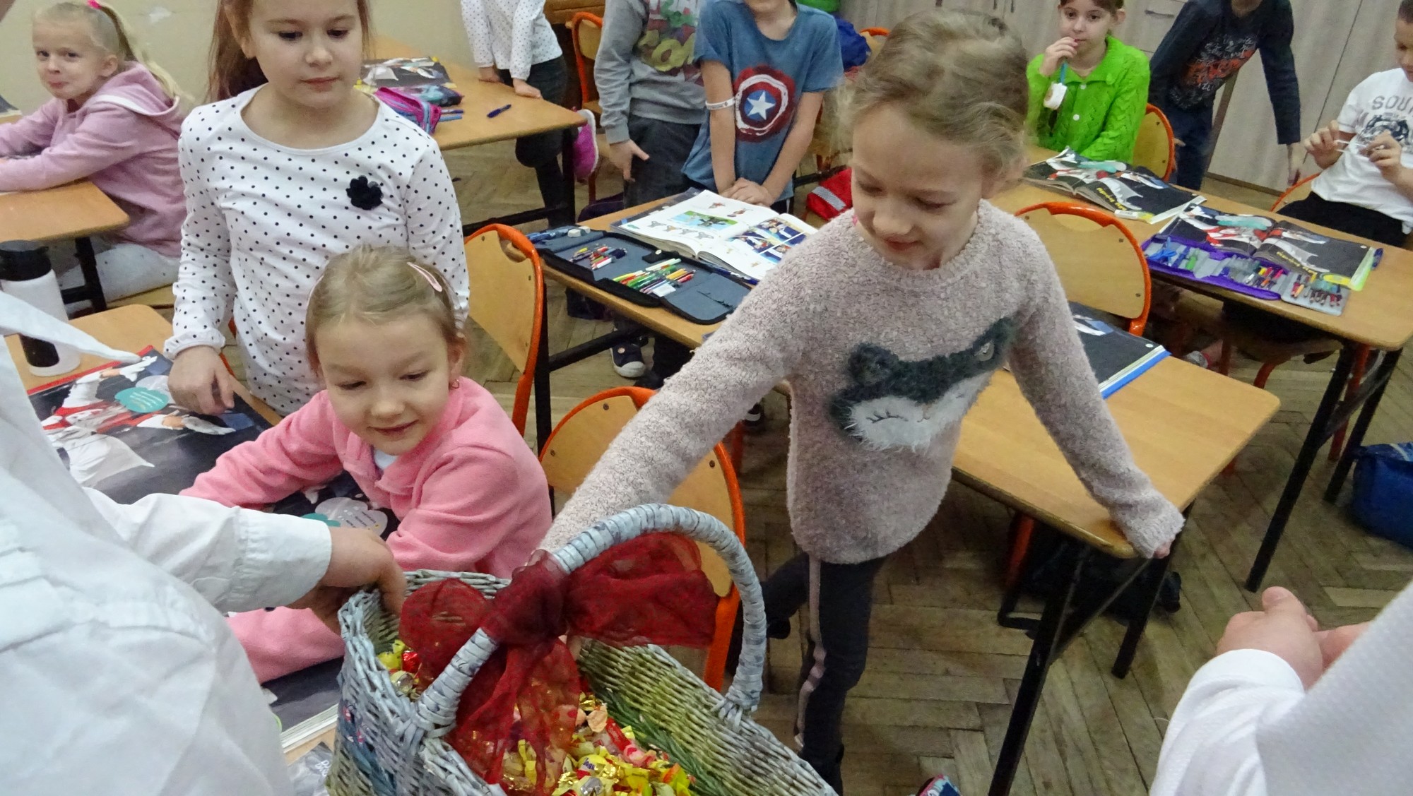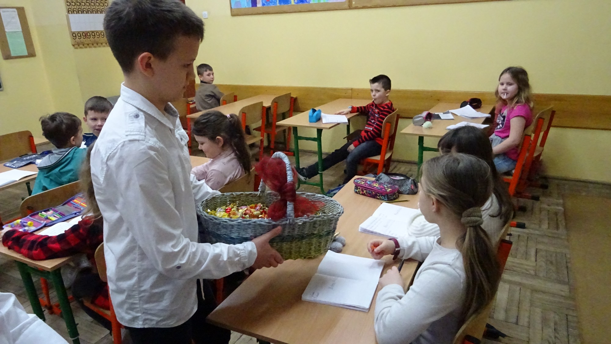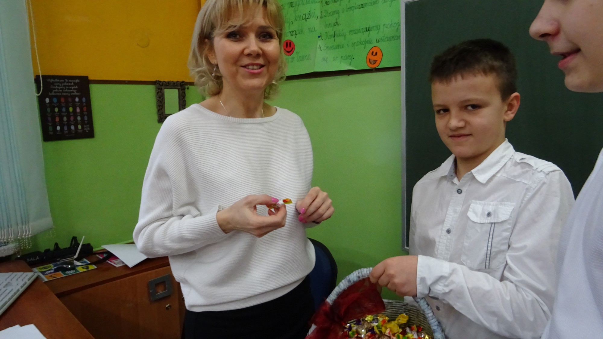 6 marca w budynku przy ulicy 3 Maja, obchodziliśmy Dzień Kobiet. Z tej okazji chłopcy- przedstawiciele Samorządu Uczniowskiego, w imieniu własnym i wszystkich kolegów, składali życzenia Paniom pracującym w szkole oraz młodszym i starszym Koleżankom. Oprócz tradycyjnych życzeń, każda z Pań i Dziewcząt została obdarowana cukierkiem.