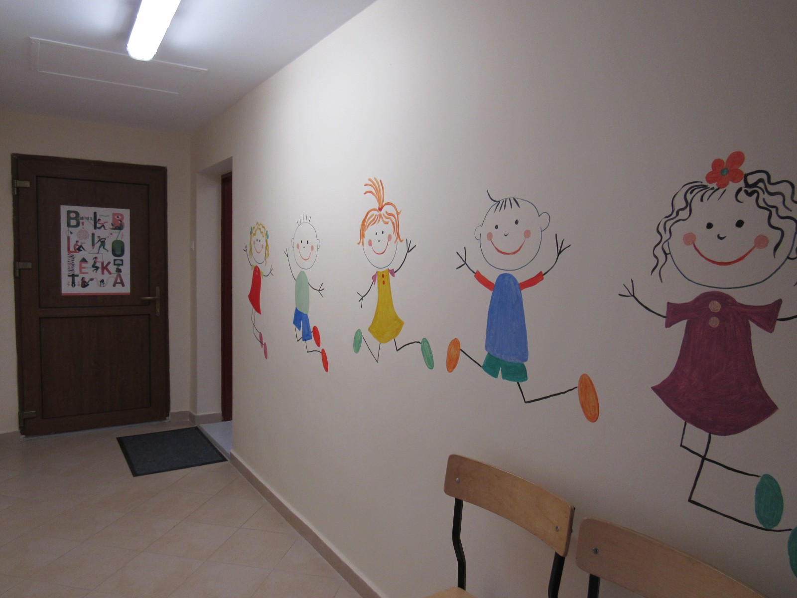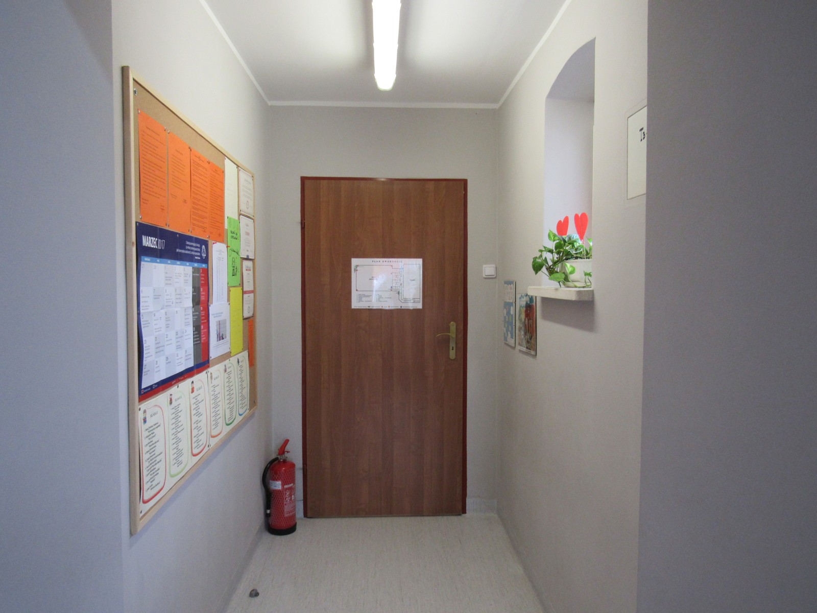 W korytarzu pełniącym funkcję szatni i poczekalni: