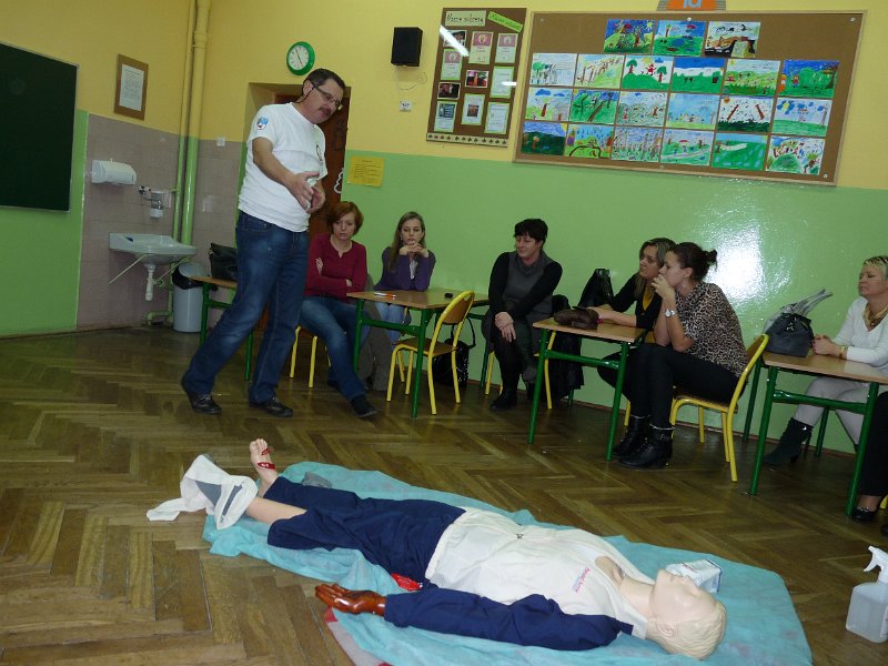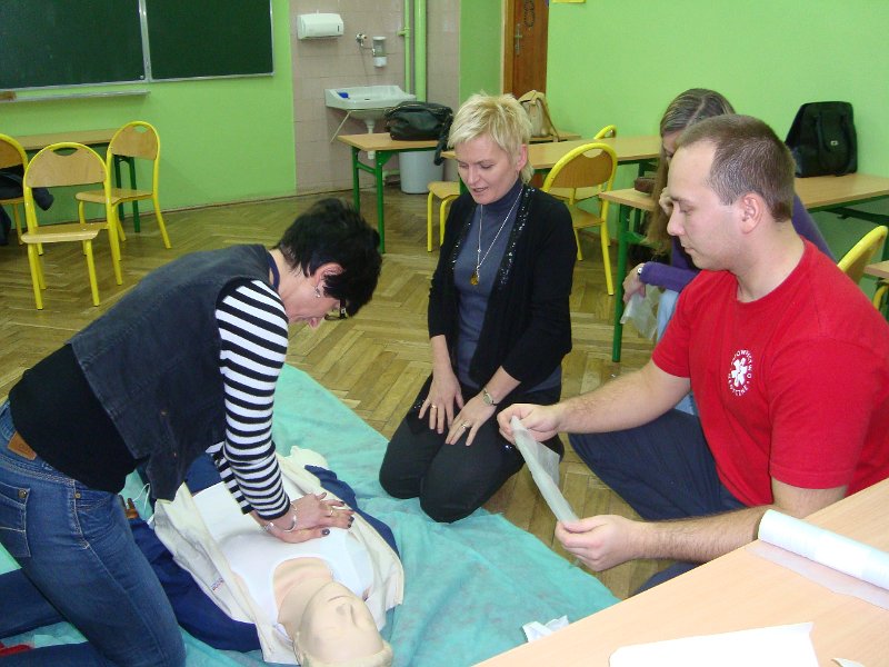 13 grudnia nauczyciele naszej szkoły uczestniczyli w szkoleniu z zakresu pierwszej pomocy przedlekarskiej. Instruktaż prowadzili doświadczeni wykwalifikowani ratownicy medyczni z Fundacji Złota Godzina w Turku. Szkolenie było kolejnym działaniem zaplanowanym w harmonogramie projektu COMENIUS REGIO „Młodzi ratownicy bez granic”. Zasady udzielania pierwszej pomocy w sposób odpowiedni do stanu zagrożenia życia przypominali sobie nauczyciele ale wkrótce zgodnie z projektem odbędzie się cykl szkoleń skierowanych do uczniów naszej szkoły.