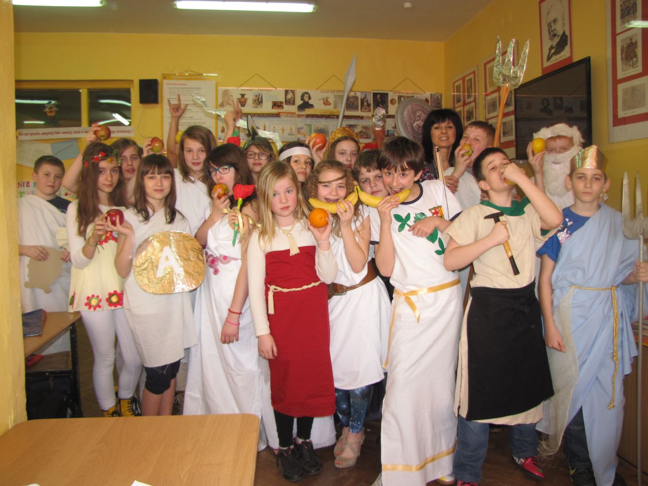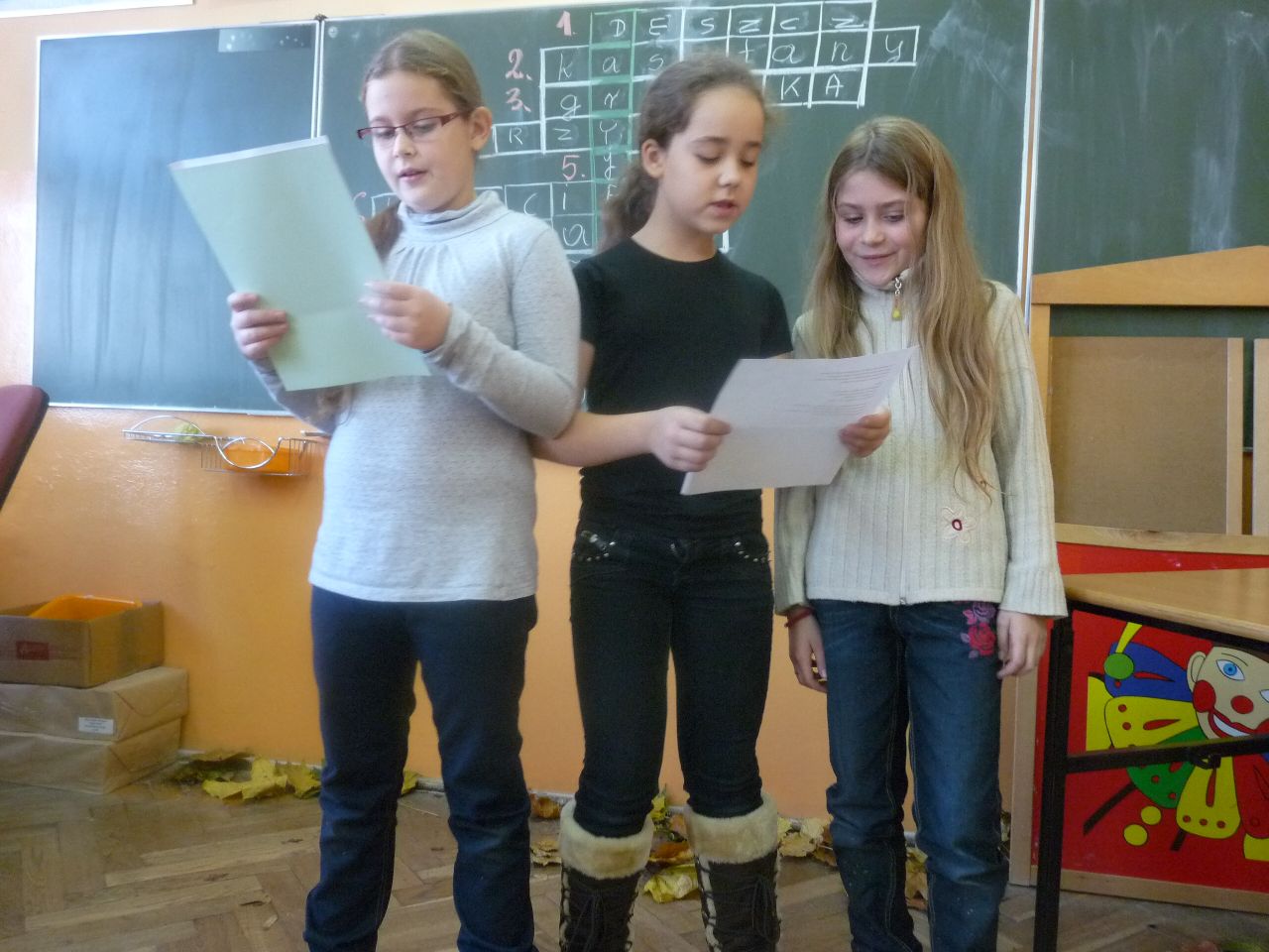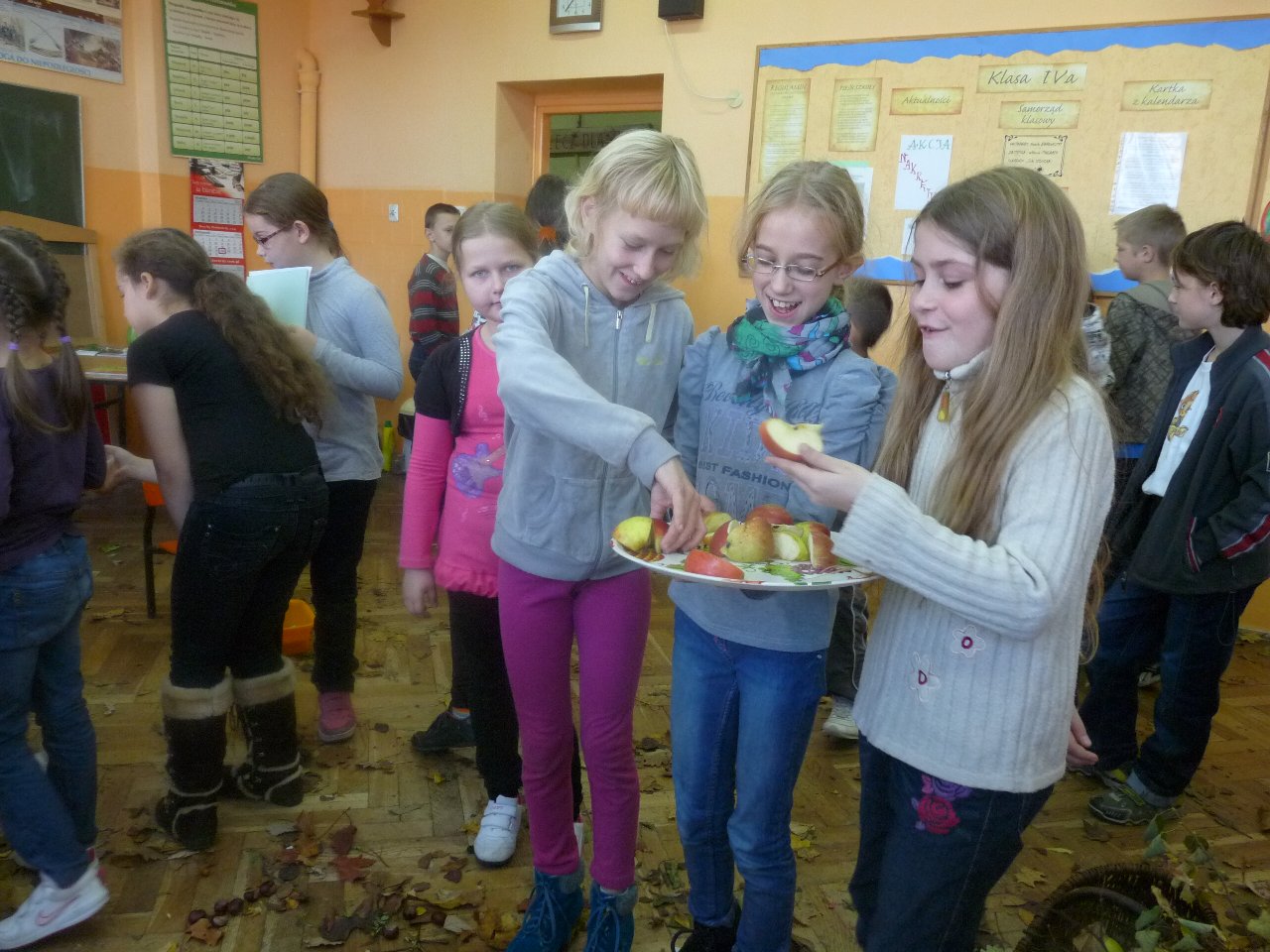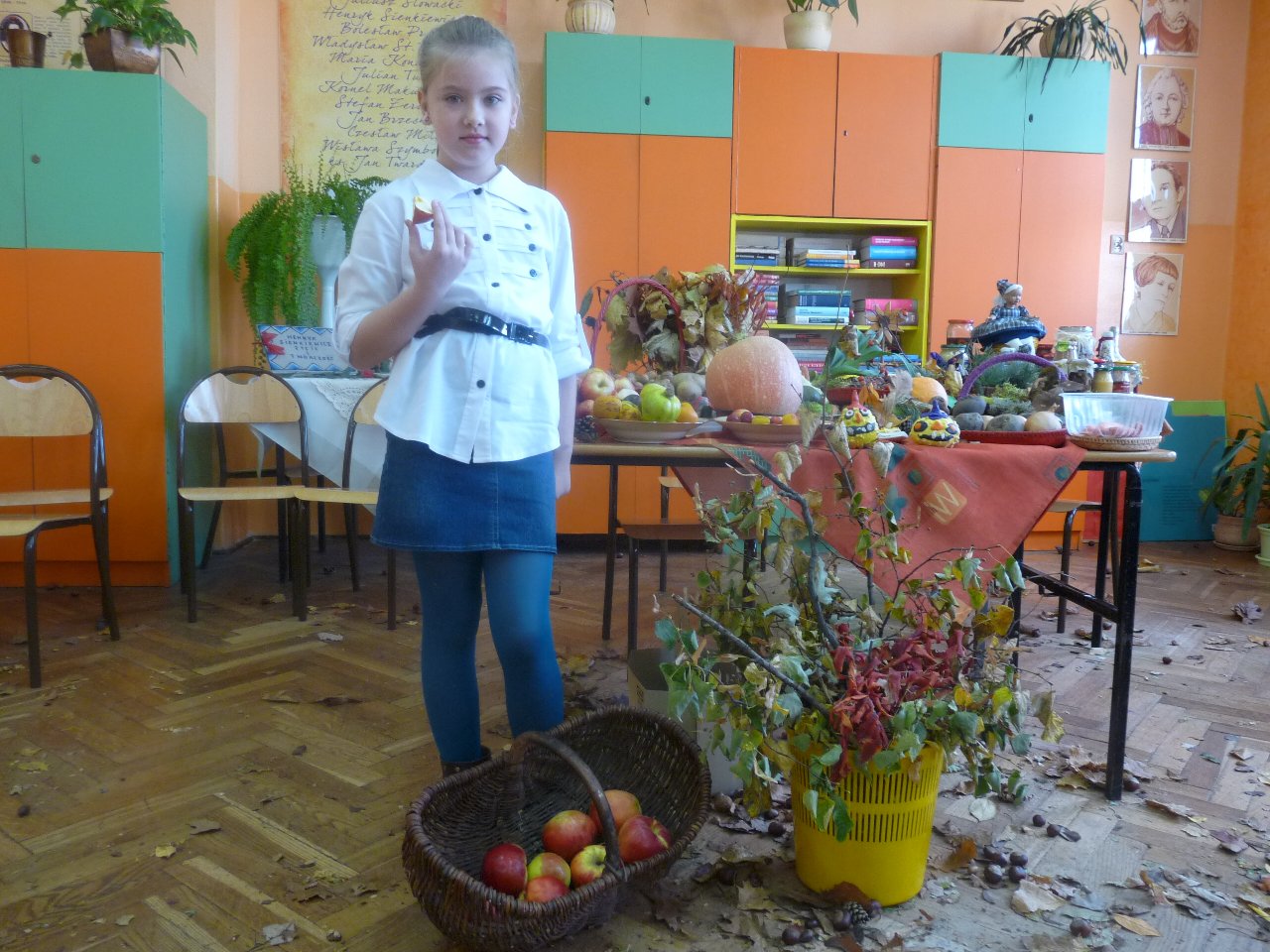26 października odbyła się nietypowa lekcja języka polskiego na temat „Jesień w naszej klasie”. Sala 407 przypominała jesienny krajobraz. Nie było jak zawsze ławek, było za to mnóstwo darów sadu, ogrodu i lasu. Lekcja ta była podsumowaniem projektu, który trwał 3 tygodnie. W ciągu tego okresu uczniowie klas IV przygotowywali się do jego realizacji. Zadania były związane z jesienią, a w tym: