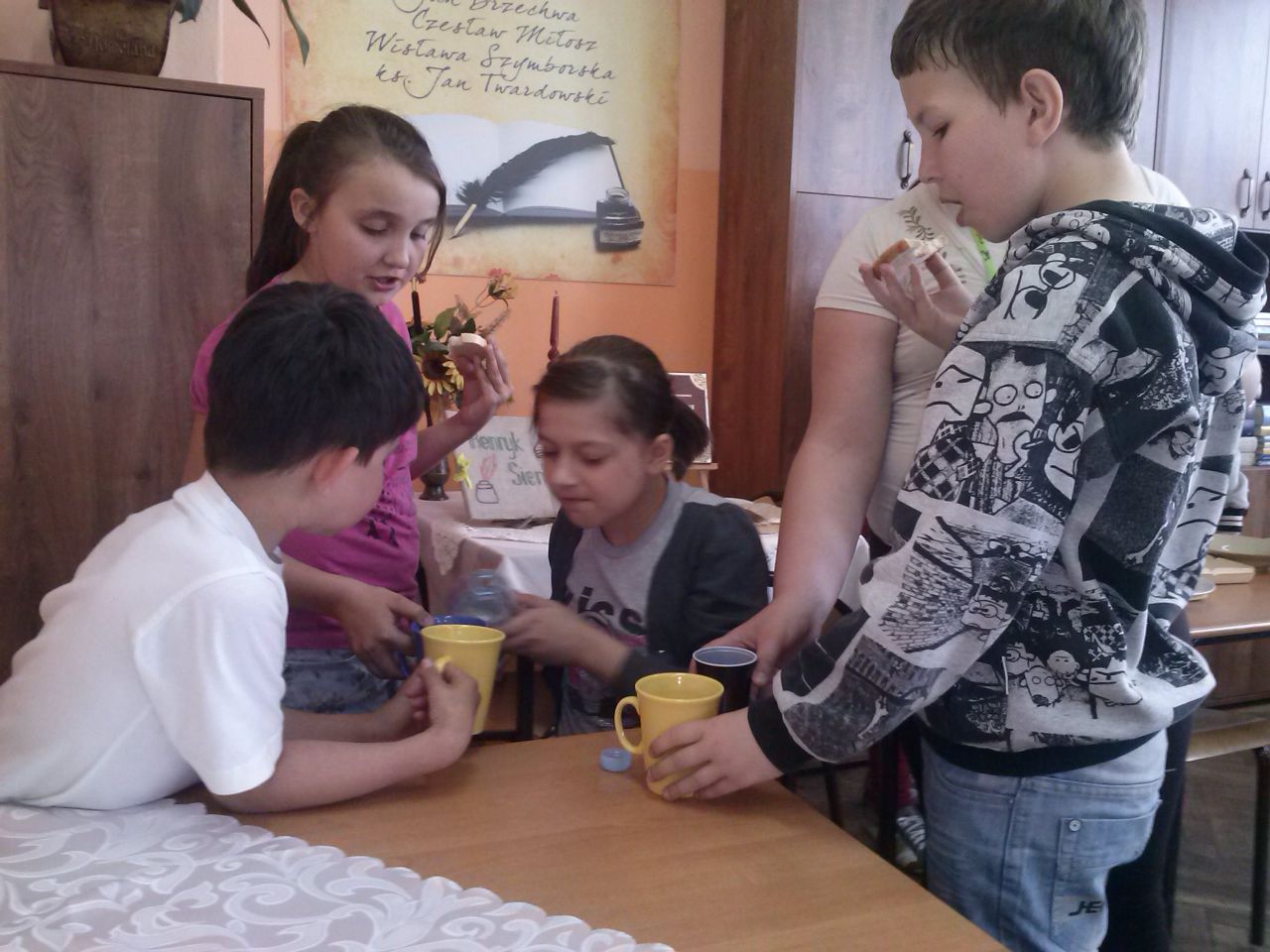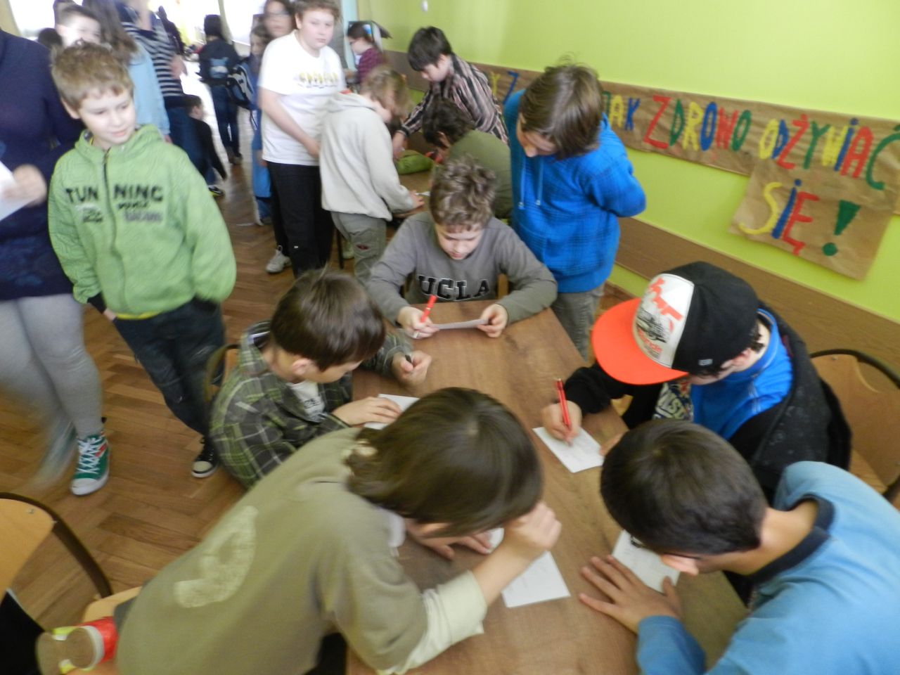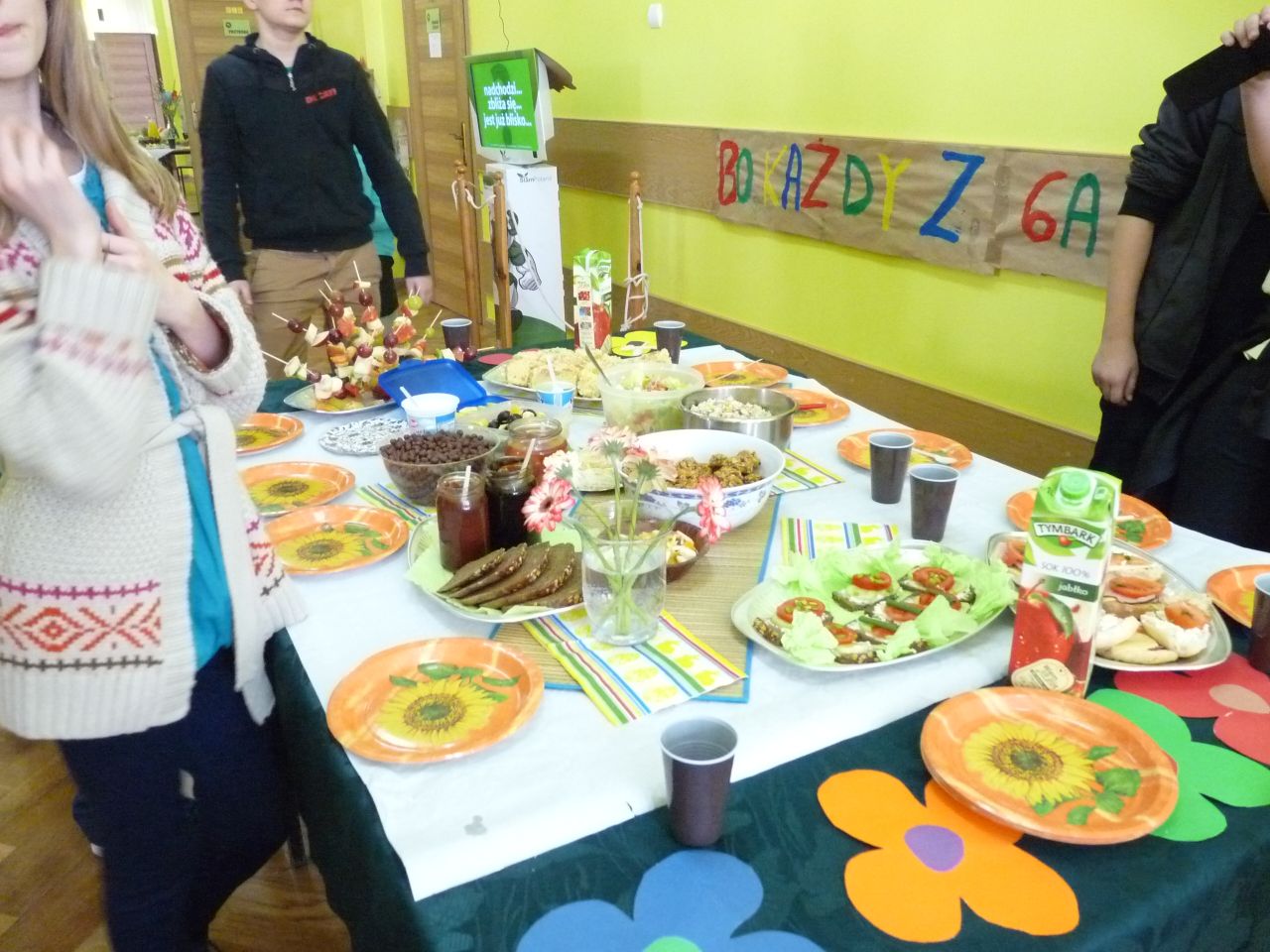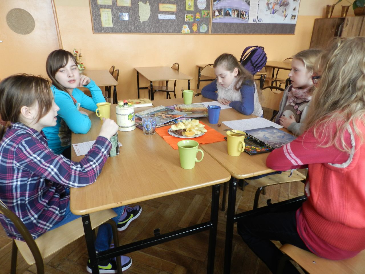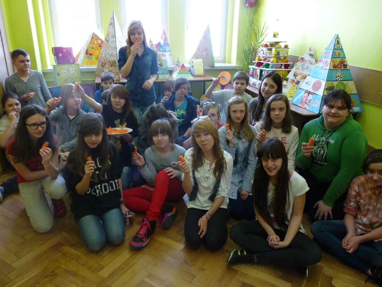 W związku z tym 8 listopada każda klasa w Jedynce wg własnego pomysłu organizowała zdrowe śniadanie. Była to świetna zabawa o dużych walorach edukacyjnych. Dzieci z apetytem jadły ciemne pieczywo z gzikiem lub domowymi konfiturami. Dużym powodzeniem ciszyły się sałatki owocowe i warzywne, kolorowe kanapki a do picia kompoty i domowej roboty soki. W tym dniu zamiast chipsów dzieci chrupały marchew, zamiast słodkich groszków wyciągały rękę po winogrono.