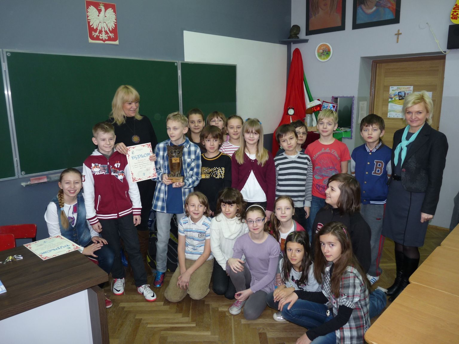Jak co roku po zakończeniu I semestru została wyłoniona klasa, która osiągnęła najlepszą średnią ocen w całej szkole. Tym razem najlepszymi okazali się uczniowie z klasy IVa, uzyskując średnią ocen 4,71 .Na lekcji wychowawczej Pani Dyrektor Krystyna Morek  uroczyście w obecności rodziców dzieci przekazała przechodnią statuetkę SOWĘ  i pamiątkowy dyplom. Dla uczniów tej klasy rodzice w nagrodę przygotowali słodką niespodziankę. Był nią pięknie  udekorowany tort. Najlepsi uczniowie zostali upamiętnieni na wspólnej fotografii.