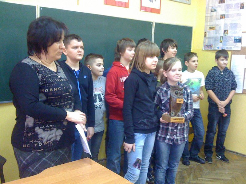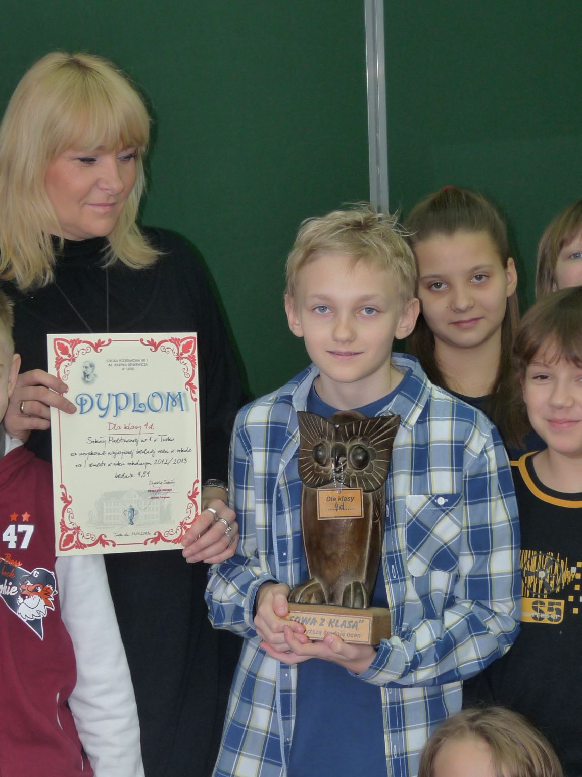 2) Uczniowie z tej klasy otrzymają pamiątkowy dyplom oraz przechodnią statuetkę „Sowy z Klasą” – symbolu mądrości, która po zakończeniu kolejnego semestru przekazana zostanie następnej klasie z najwyższą średnią ocen.
