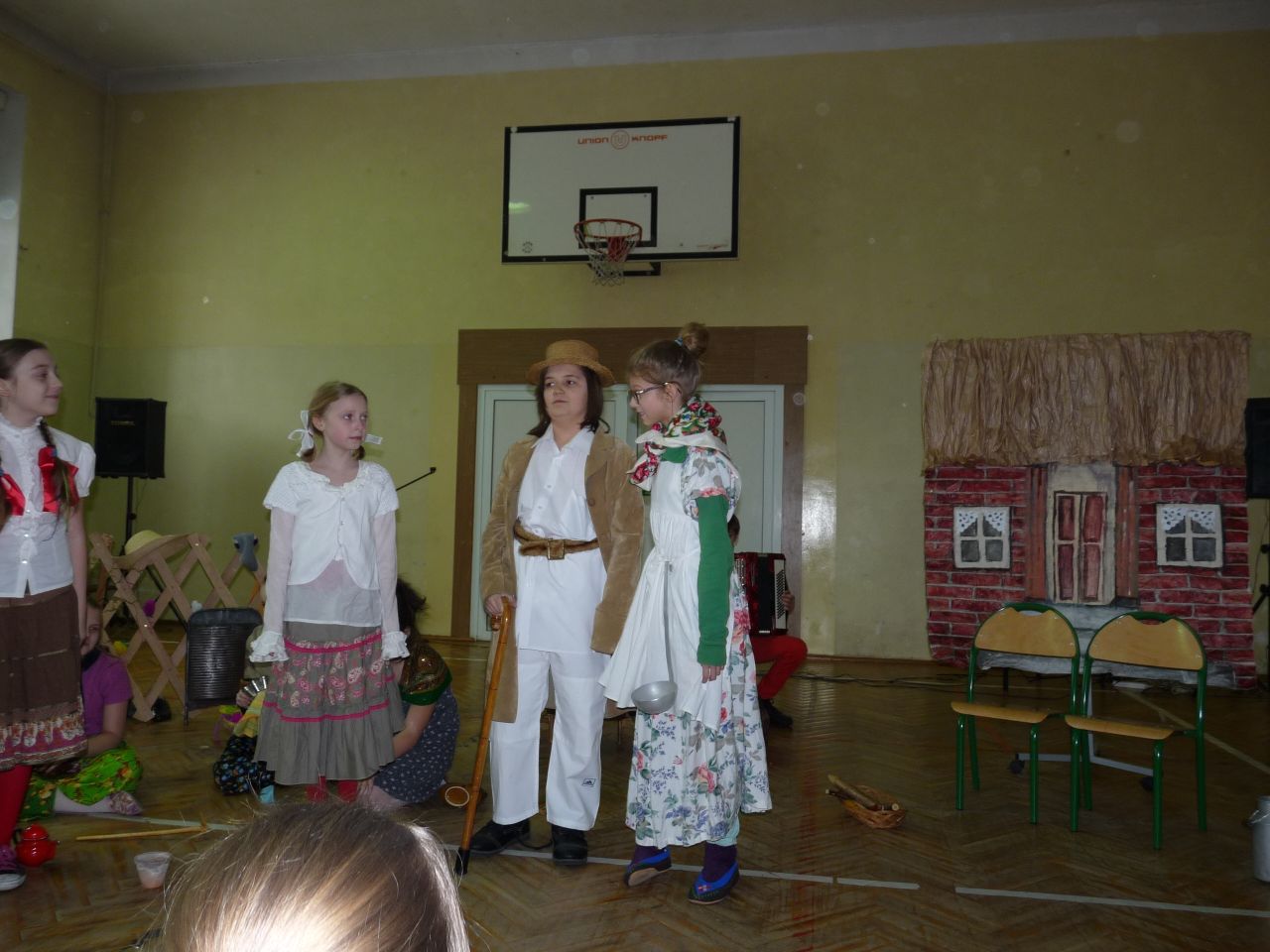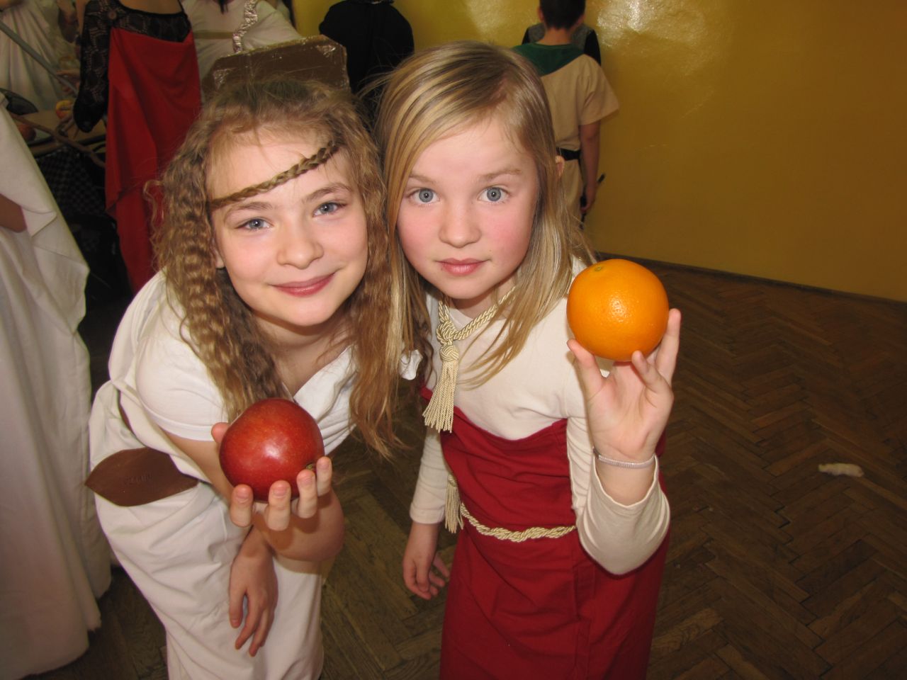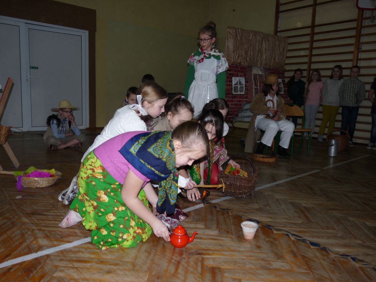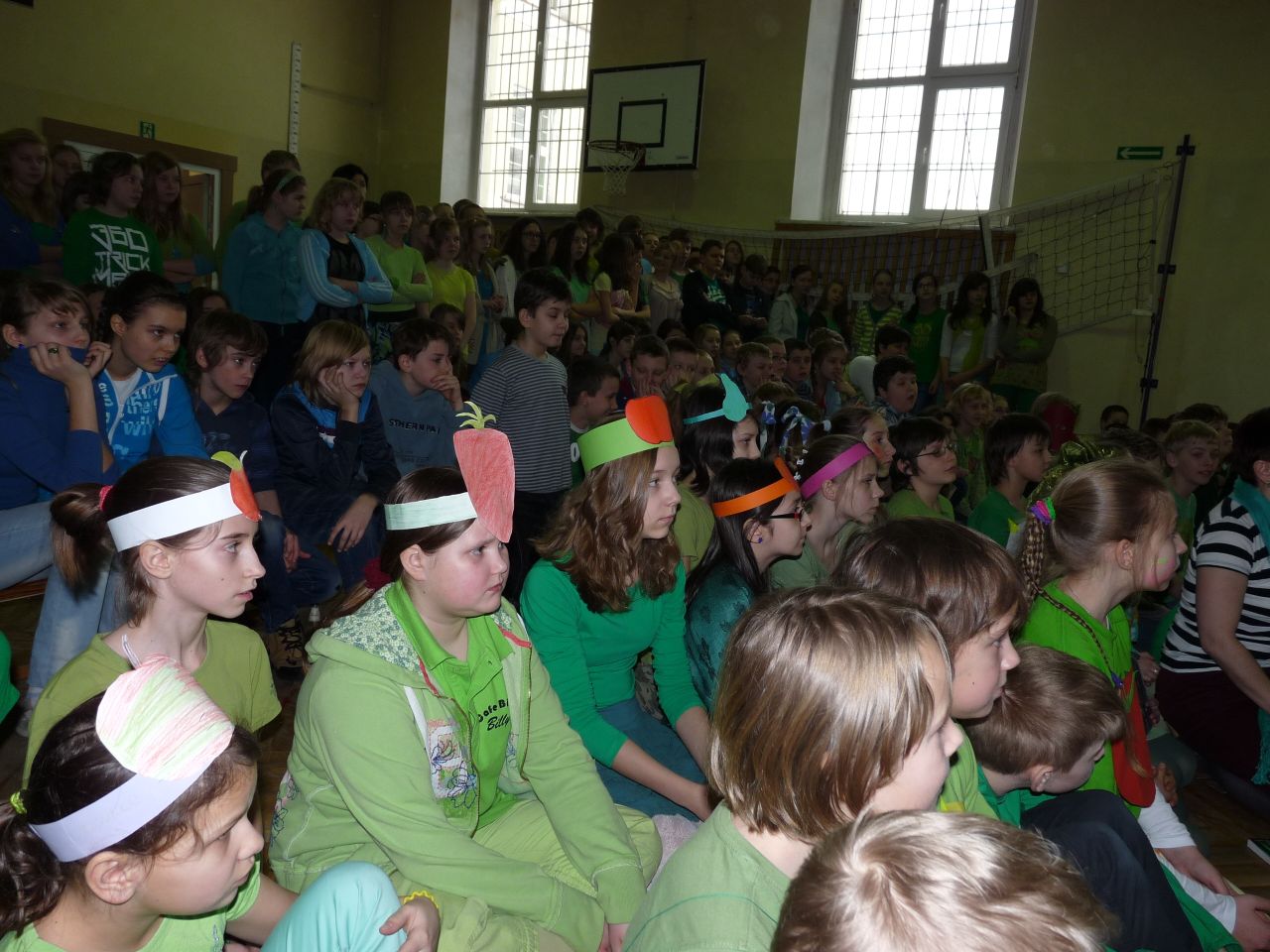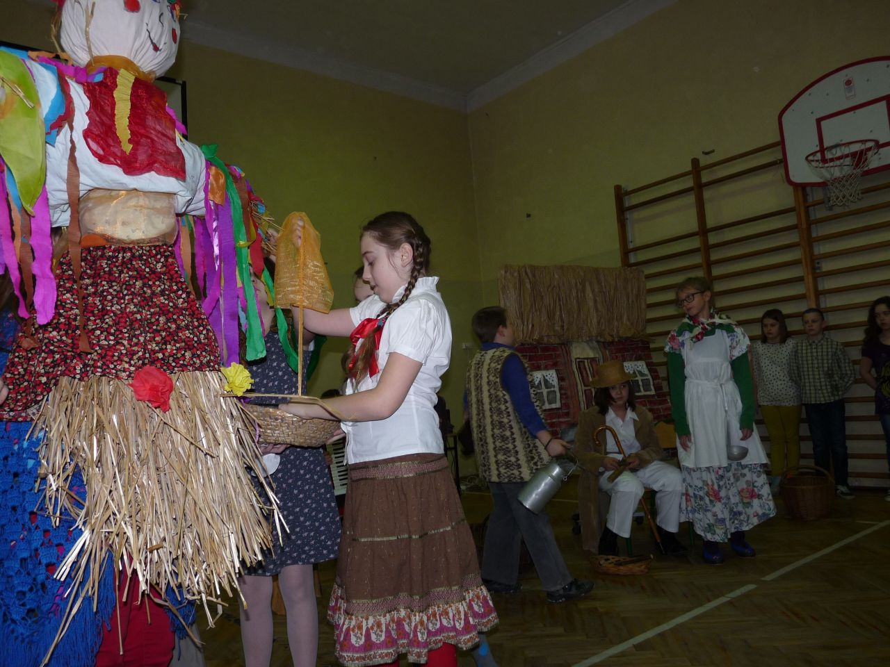 Lekcja języka polskiego była ciekawa również z tego względu, że uczestniczyli w niej uczniowie klas I, II i IV. Uczniowie świetnie ze sobą współpracowali.. Zadania były tak opracowane, że brali w nich udział zarówno starsi jak i młodsi. Zadań do wykonania było wiele, angażowały do pracy wszystkich uczniów. Dzieci wykazały się dużą wiedzą na temat wartości odżywczych warzyw i owoców. Niektóre dzieci próbowały dane warzywo lub owoc ze stwierdzeniem, że jedzą coś po raz pierwszy. Lekcja języka polskiego stworzyła okazję do tego aby przekonać uczniów , że jesień ma w sobie całe bogactwo zapachów, kolorów, kształtów a także wartości odżywczych, które są w warzywach i owocach.