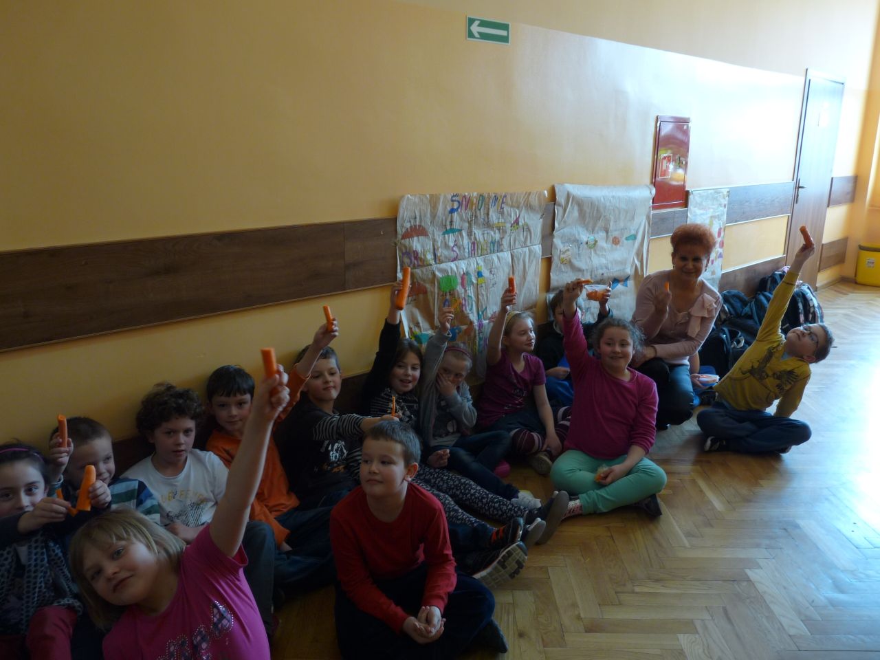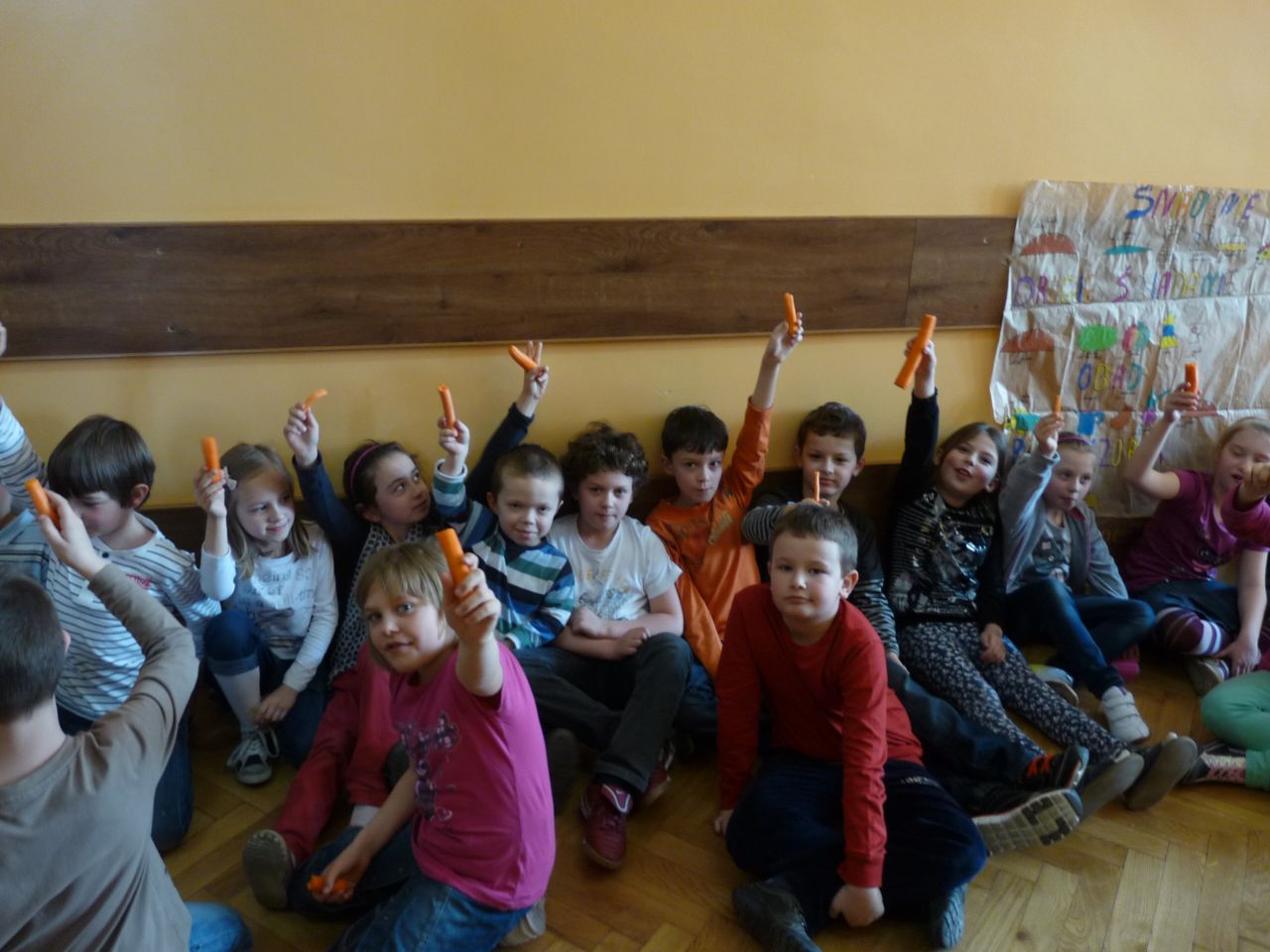 Wiedzę o zdrowym odżywianiu dzieci zdobywały, rozwiązując zagadki, krzyżówkę, użyły też warzyw do zabawy i przedstawienia kukiełkowego. Europejski Dzień Zdrowego Jedzenia to znakomity przykład budowania świadomości zjadania w szkole II śniadania, które daje energię do nauki.
