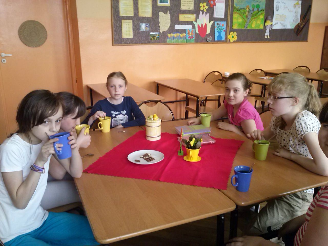 Rozmowy o książkach, pisarzach, czytanie poezji, a także gry i zabawy ortograficzno – gramatyczne prowadzone są w sposób dość nietypowy, ponieważ odbywają się przy herbatce. Wspólnie parzona i wypijana herbata łączy uczestników kółka polonistycznego. Bardzo często spotkania wzbogacamy poprzez poczęstunek, który zależy od pomysłu członków kółka, są to owoce, kruche ciastka a nawet desery. Zatem maksymą kółka polonistycznego jest powiedzenie: „Coś dla ciała, coś dla ducha”.